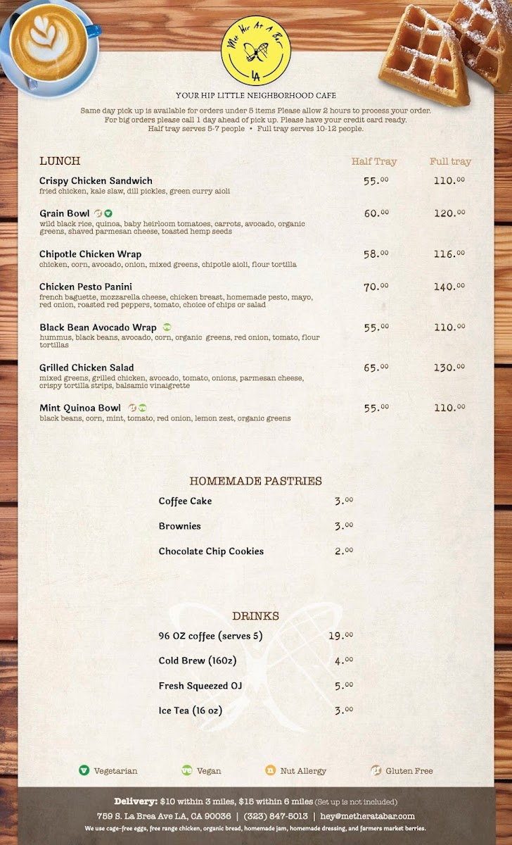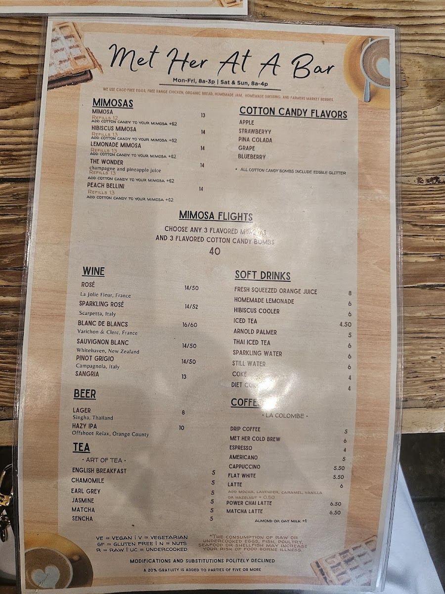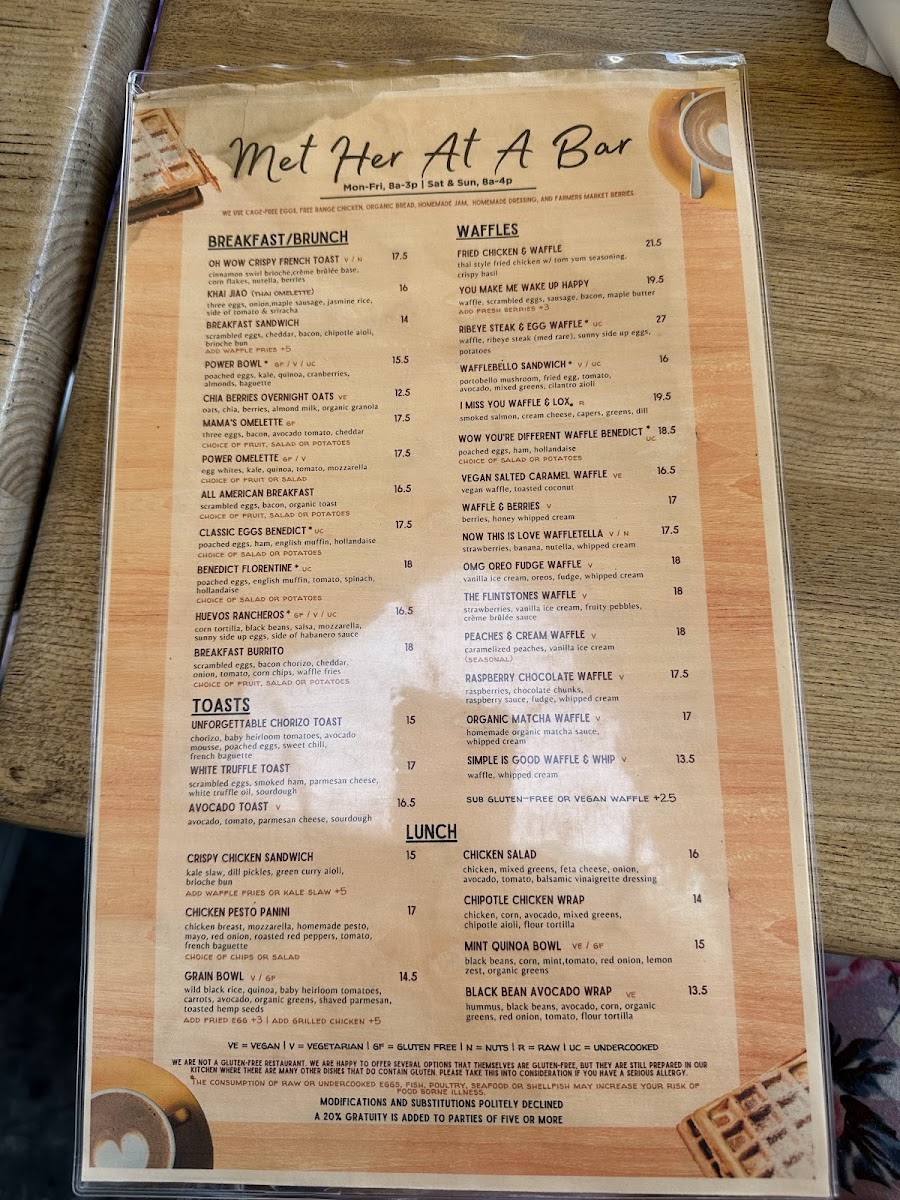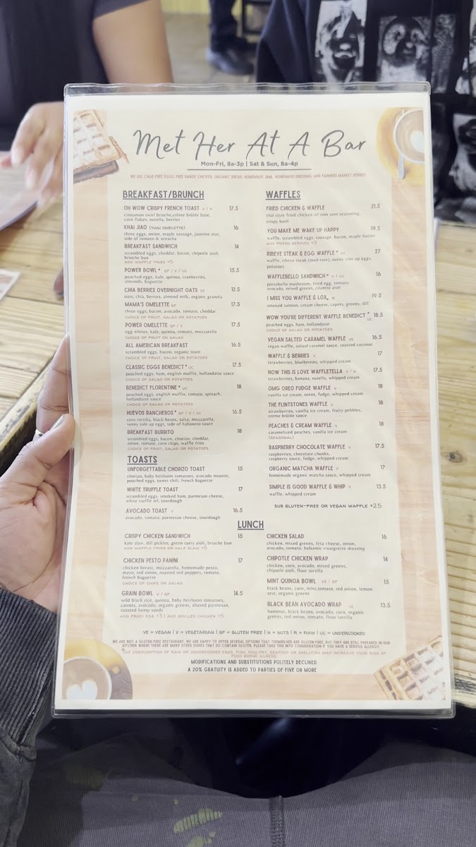 At Met Her At A Bar, you'll find a menu that pairs perfectly with the vibrant atmosphere of this Los Angeles hotspot. Located at 759 S La Brea Ave, the restaurant offers an eclectic mix of comforting classics and creative twists. Whether you're here for a laid-back dinner with friends or a fun night out, each dish is crafted with fresh ingredients and served with a side of personality. From savory appetizers to indulgent entrees, there’s something to please every palate. The cocktail menu is equally exciting, featuring expertly crafted drinks that will make your visit even more memorable. So, grab a seat, relax, and let the flavors do the talking - this is one menu you won't want to miss.